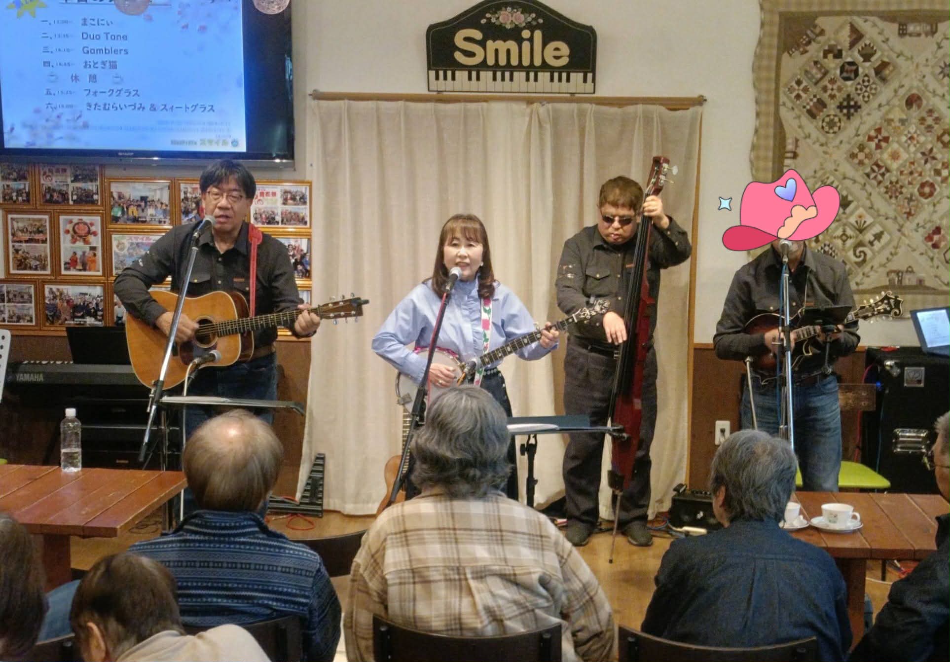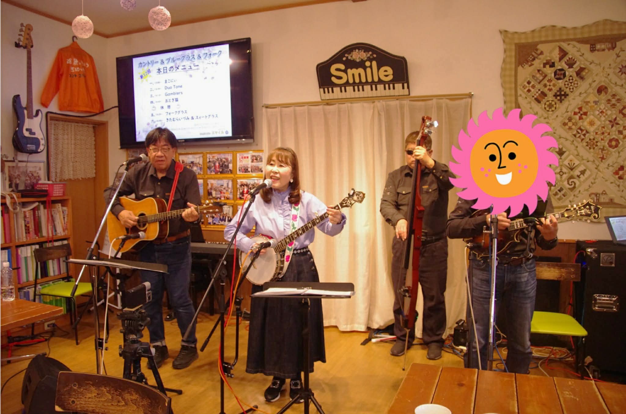 先日の3/22(日)近江八幡のコミュニティカフェ・スマイルさんにて「第12回カントリー&ブルーグラス&フォーク」が開催されました。お久しぶりにお仲間達と集い、楽しい一日に感謝致します。お越し下さった皆様&スマイルさん、そしてお世話人のまこにぃさん&出演者の皆様楽しい一日をありがとうございました。